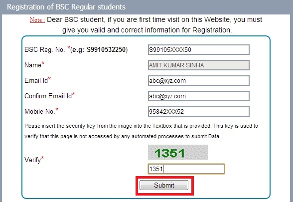 - Please provide a valid BSC Reg. No,Email Id and Mobile No. to proceed to the