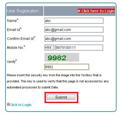 - Please provide a valid Email Id and Mobile No. to proceed to the registration